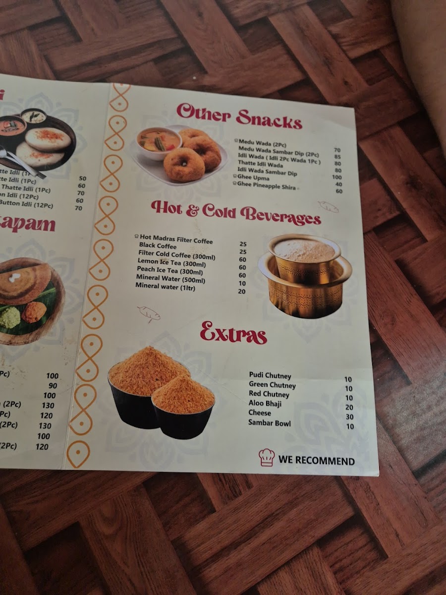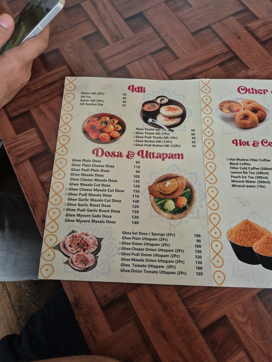 - Beverages: Start your culinary journey with their signature Hot Madras Filter Coffee or refreshing Lemon Ice Tea, all available at pocket-friendly prices.