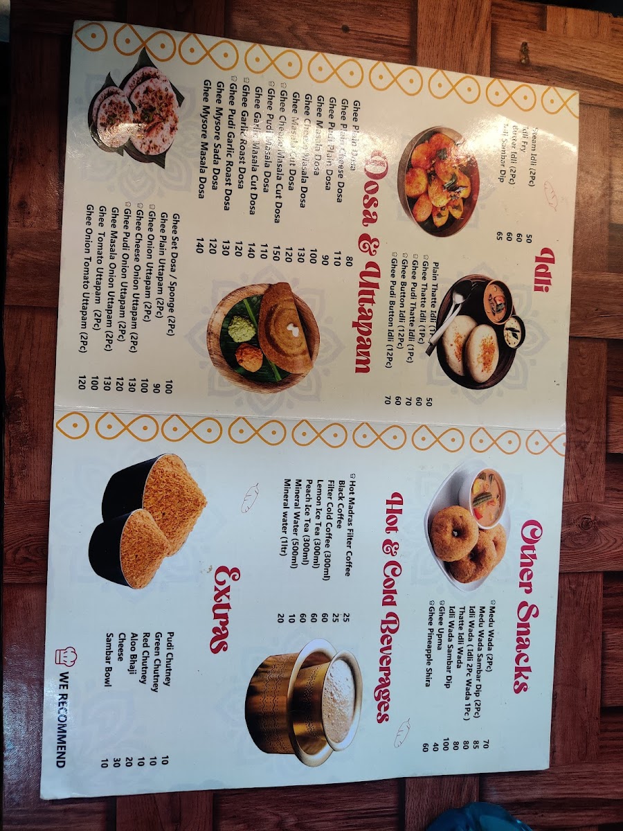 - Dosa & Uttapam: The star attraction includes a variety of dosas, from the classic Ghee Masala Dosa to innovative creations like the Ghee Pudi Masala Dosa, each drizzled in rich ghee for an irresistible taste.